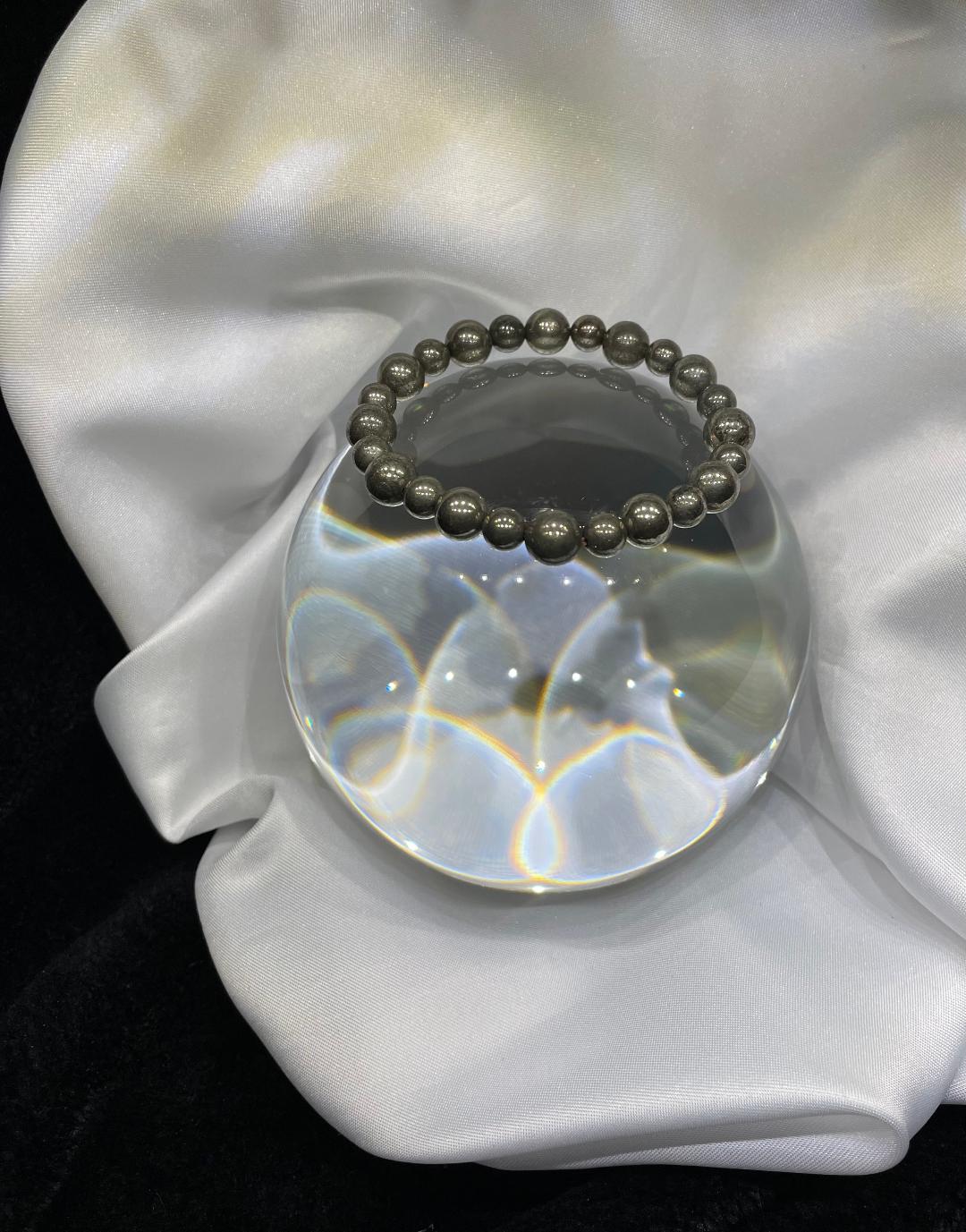 Elevate your style with our handmade Pyrite Bracelet! Crafted with stunning pyrite beads, this bracelet adds a touch of elegance to any outfit. The natural properties of pyrite are said to bring abundance and prosperity, making it the perfect accessory for those seeking good fortune. Shine bright with Pyrite.