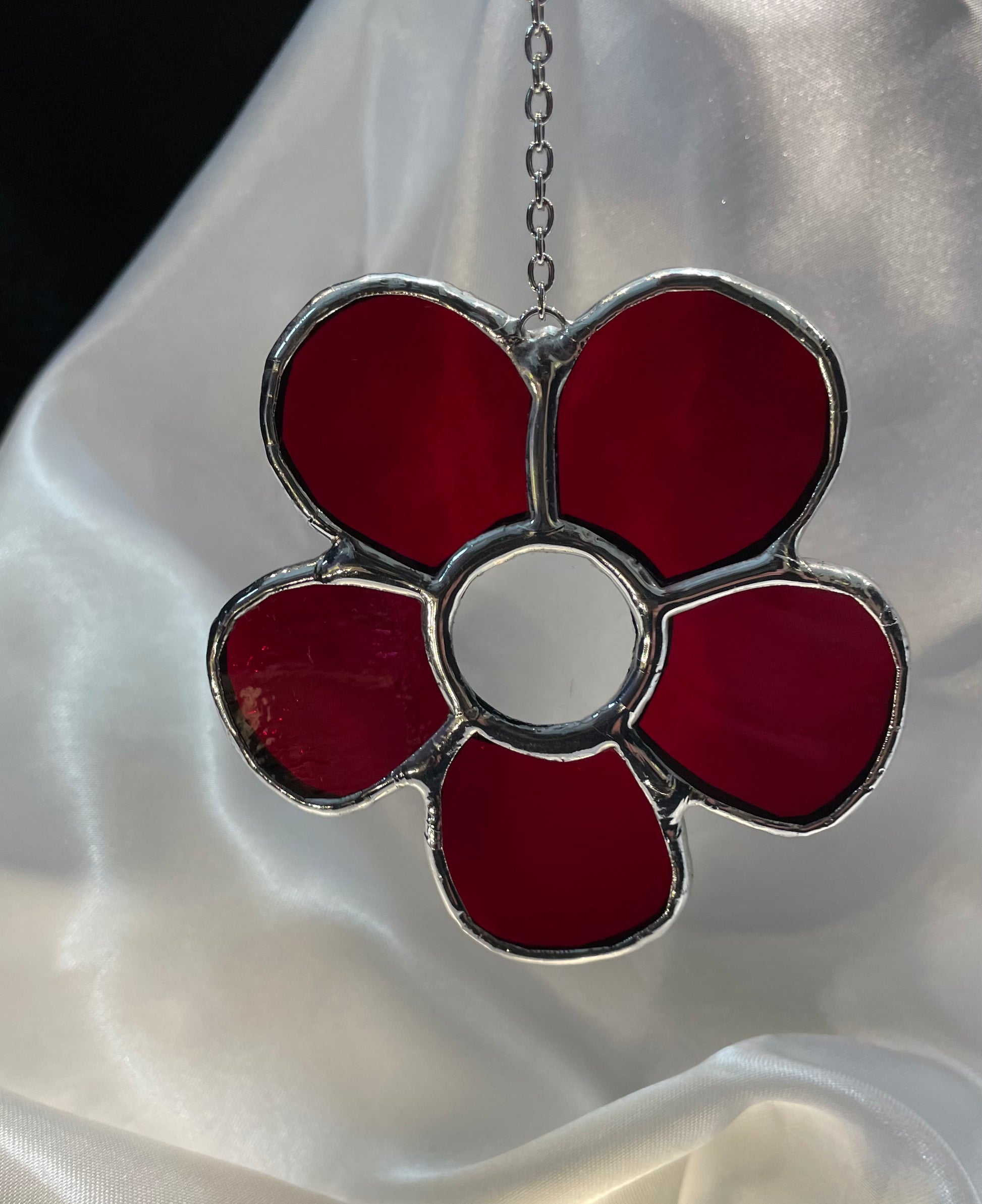 Discover the delicate beauty of our Small Flower. Hand crafted with copper foil and 60/40 solder, this stained glass piece will add a touch of elegance to any space. Bring a sense of artistry and charm to your home with this stunning piece.